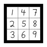 Notice how the first number of every double digit column in each square of the first image in section 3 is the same as every other square in this image, with three vertical columns of 123, 456, and 789 in each magic square. This is the same numeric pattern that was documented in the Greek Trophos square that was witnessed in the first image of the first section in numerical imagery. Now take a look at the second number in every vertical column of each magic square in the first image of section three. The second number of each vertical column in the first square starts with 9 and moves in a reverse direction to 1. The second number of the second square starts with 1 and moves in a backward motion to 2. In this fashion the second number of the third inner square begins with 2 and moves to 3. The fourth square starts at 3 and moves to 4. The fifth inner square starts at 4 and moves in a reverse direction to 5. The sixth magic square begins with 5 and moves to 6. The seventh inner square starts at 6 and moves to 7. The eighth square starts at 7 and moves to 8. And finally the second digit of every column in the ninth inner magic square of the first image in section three begins with 8 and moves in a reverse or backward direction ending at the number 9. This is how the analog computer moves, in rows, columns, tumblers and digit counters, clockwise and counter clockwise like a timepiece of the Universe, or a slide rule, water meter, speedometer, or even a pinball machine. Even more fascinating is that the first integers of the three horizontal rows in each inner square provide the first 3 Soul codes of 147, 258 and 369, whereby the second integers of the three horizontal rows in each inner square provide the musical frequencies in Hertz of the 9 note numerological scale which is 963, 852, 741, 639, 528, 417, 396, 285 and 174. The other amazing aspect of these 9 singular inner magic squares is that they are a double digit breakdown for all 9 of the numerical images that were provided in section 2, but these 9 inner squares are all transcribed in vertical columns of 1 to 9 instead of the horizontal rows that were used in the 9 images of section 2, but are still providing the sums of 1 to 9. Being both infinite and matrix in nature gives this math the ability to be read and performed in equations vertically or horizontally. Also if you visually draw all of the inner squares together you will have one complete extra large mega matrix magic square with all rows, columns, and diagonals adding up to the sum of 9.